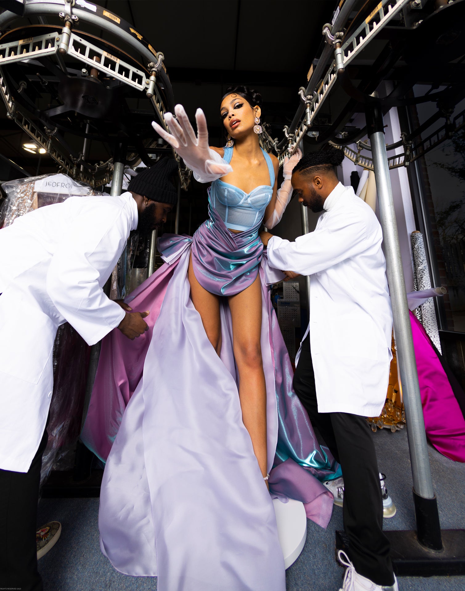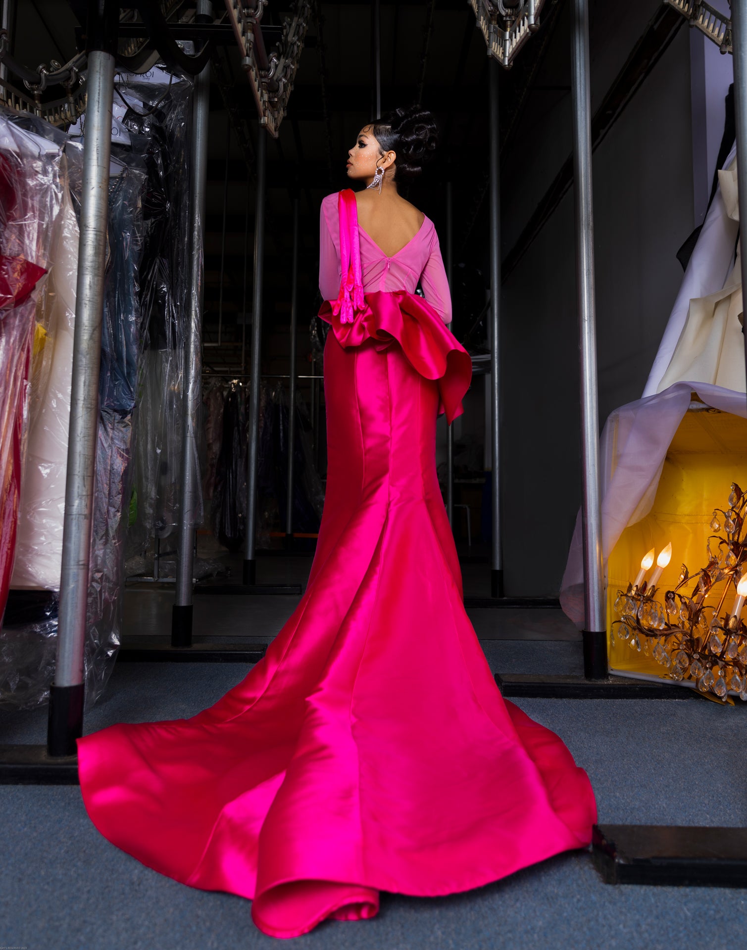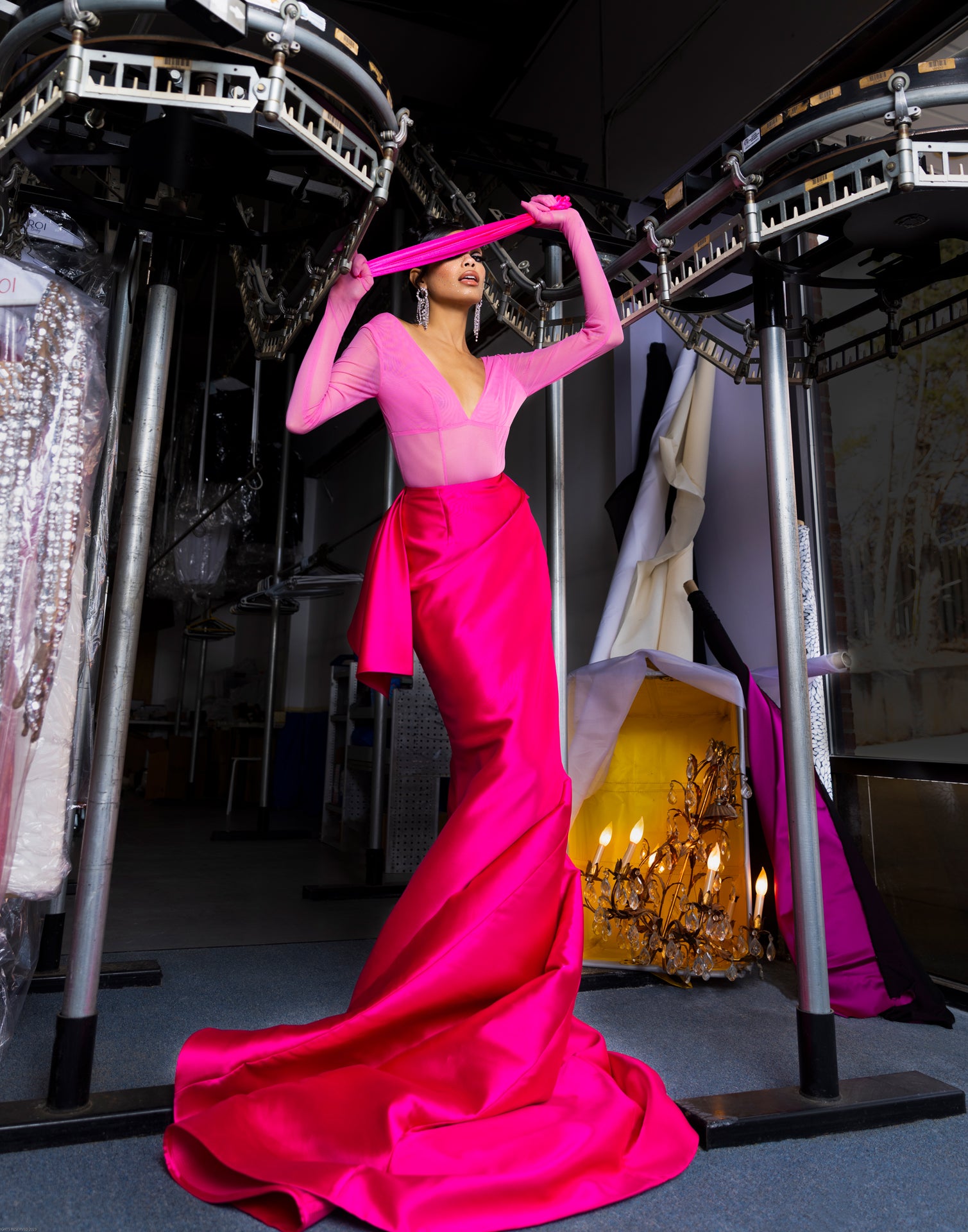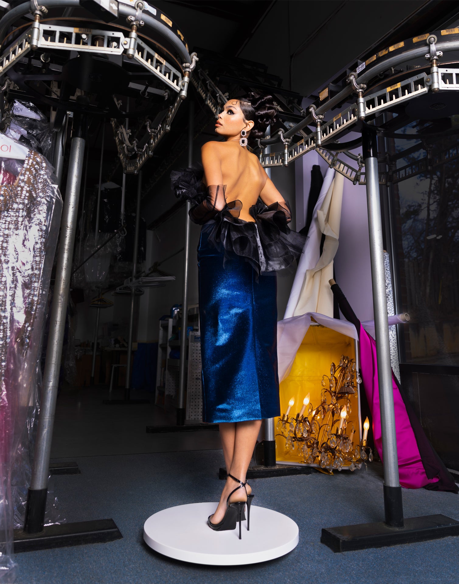 Our muse is musing. As imagined, pouring herself over a courtyard balcony draped as drawn, she is a vision, drifting through the hallways as Teena Marie sings to echo, leaving us all visually spellbound to the touch as she dizzies and dazzles.